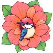 Send smiles with this free printable birthday card! A cute kawaii kingfisher peeking from a vibrant flower makes a delightful print-at-home surprise.